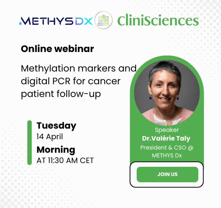 Notre approche se base sur la biopsie liquide, qui permet l’analyse des marqueurs de la tumeur présents dans les liquides biologiques tels que le sang. METHYS Dx développe ainsi des panels de marqueurs de méthylation afin de caractériser l’ADN tumoral circulant ou ADNtc dans la biopsie liquide. Les tests développés par METHYS Dx permettront d’établir un pronostic de la maladie et de suivre l’évolution de la tumeur, ainsi que de détecter précocement les récidives.